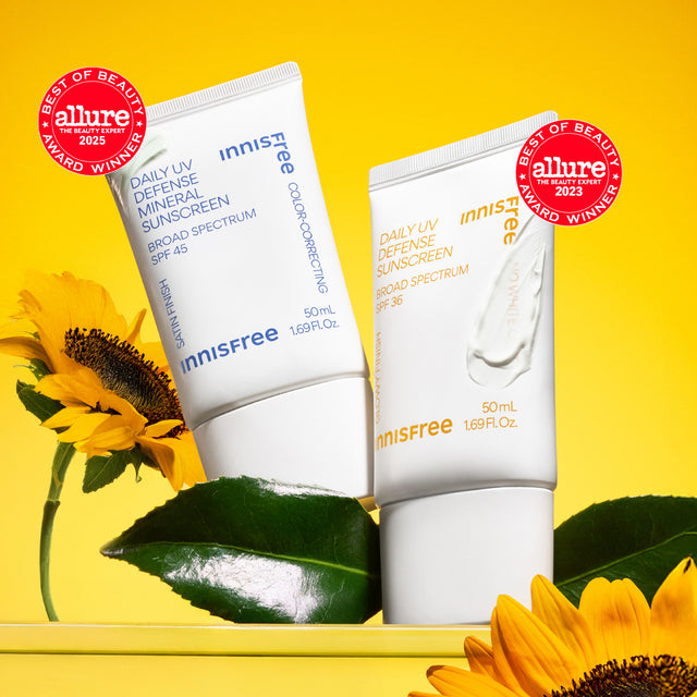SPF is a crucial last step in any AM skincare routine! It helps protect from the sun’s harmful UVA/UVB rays, which defends skin from early signs of aging. Our Korean sunscreen goes beyond protection by wrapping skin up in nourishing, glow-boosting ingredients. Our award-winning Daily UV Defense Sunscreen is light as air, has no white cast, and is infused with Sunflower Seed Oil to nourish plus Green Tea and Cica to hydrate + soothe. Our Daily UV Defense Mineral Sunscreen has a green tint to visibly neutralize redness and is packed with eight types of Hyaluronic Acid and soothing Cica. They’ll both help you defend your glow all day long!